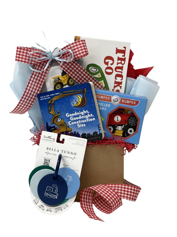 This gift can be tailored to be gender-neutral (as pictured), or for a baby girl or baby boy. We’ll change ribbon colors/contents to make sure it fits the specifications you need for the little one in question! Just choose your option.